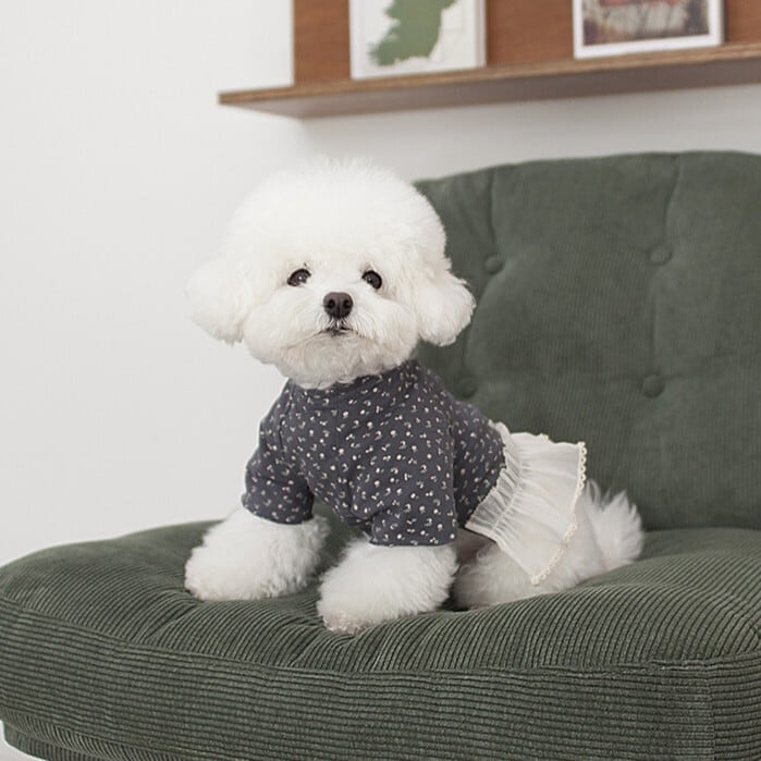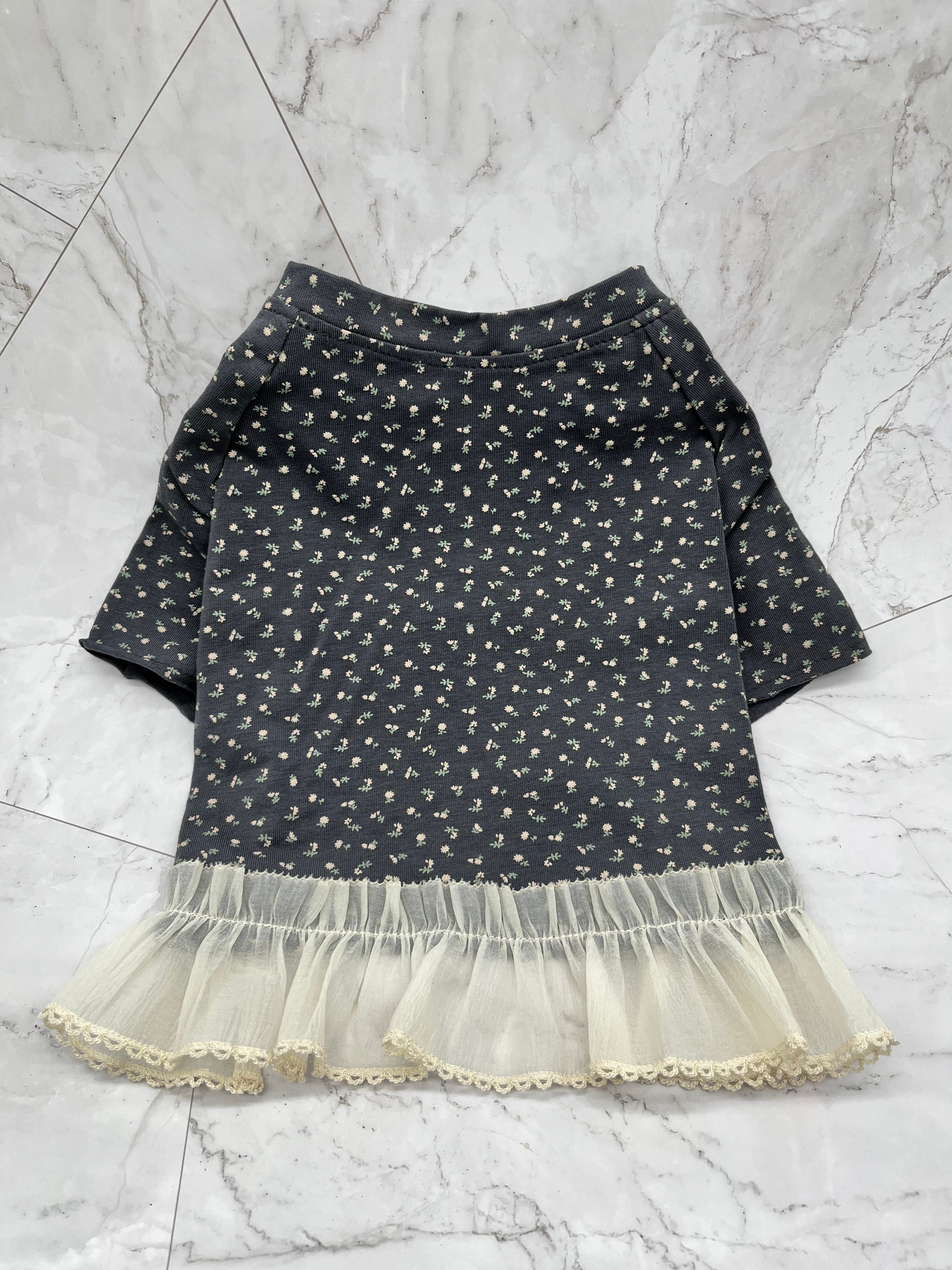 シンプルなラウンドネックのデザインに、豊かな感性を表現するレースを加えたスカート風のデザインです。